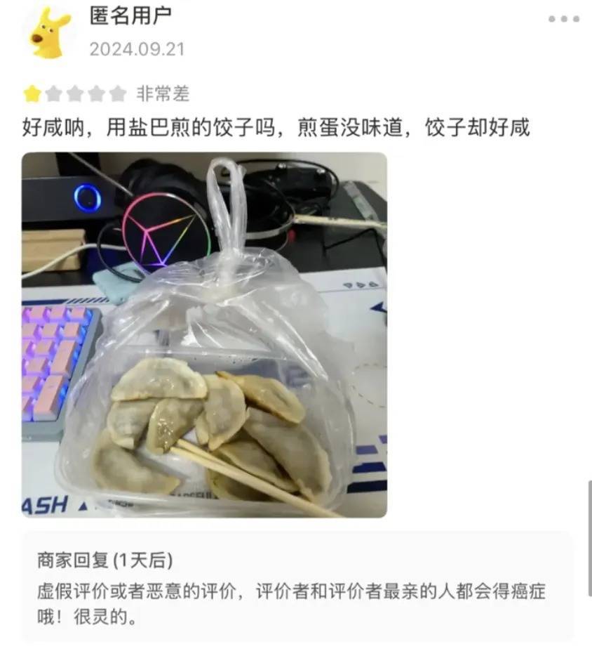 差评如镜,映照的是产品与服务的欠缺,更是顾客用脚投票前的一种警示信号。一句“饺子好咸”“味道奇怪”虽然刺耳,实则可能是食客以切身感受为商家送上的免费“质检报告”。然而,涉事店主却将差评一律斥为“恶意”“搞破坏”,更以“评价者得癌”恶言相向。如此“闻过则怒”,既没有半分格局,也不利于发展。