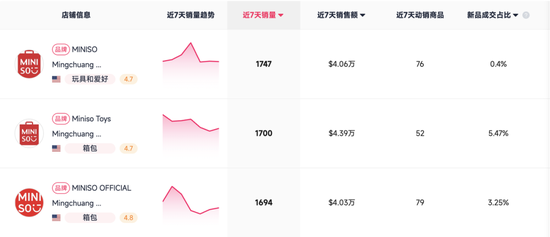 不过,目前名创优品与泡泡玛特在美国市场的差距仍然明显。FastMoss数据显示,TikTok上,泡泡玛特美国店近7天销量为2.19万,销售额为92.42万美元,但名创优品销量量级在几千,销售额加起来12万美元。